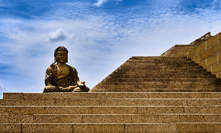 怎样才能让功德之光冲破这黑纱呢?佛陀告诉我们,要大悲菩提圣境,要重在修行,要有大悲的菩提心。要用最善良、最慈悲的心态,修正自己一切不干净的行为;要真心实意地去关爱众生,在正知正见的基础上,把自己舍掉,一切为利众生,把众生的利益放在第一位。当有了菩提心,真正做到无私利他时,我执就少了,无明黑业就减轻了,罩住功德山的黑纱就会冲破,自己靠修行累积的功德山就会借助佛力发出光芒!