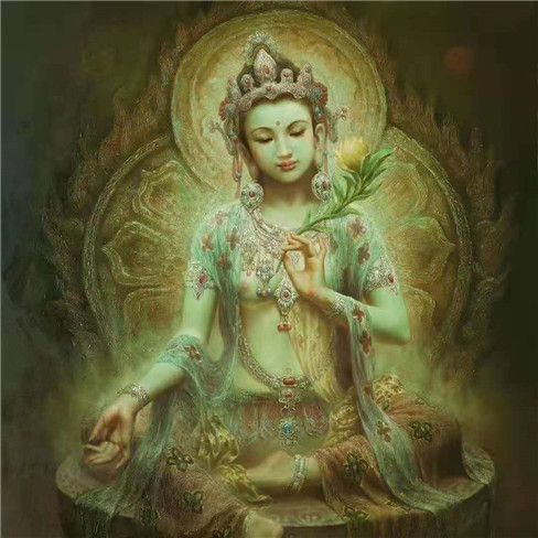 绿度母心咒:嗡 达咧 嘟达咧 嘟咧 梭哈观音菩萨普度眾生时,因為慈悲眾生,於是不经流泪,而她的眼泪就化身為绿度母菩萨,度母一共有21相,其中绿度母是21相根源。持诵功德说明:「成就聪明。福德吉祥。辩才具足。世乐具足。多财富贵。贤瓶如意。疗一切病痛。鬼魅悉能除遣。灾疫消灭。能成一切善事。能灭一切罪障。」阿底峡尊者说此法功德: