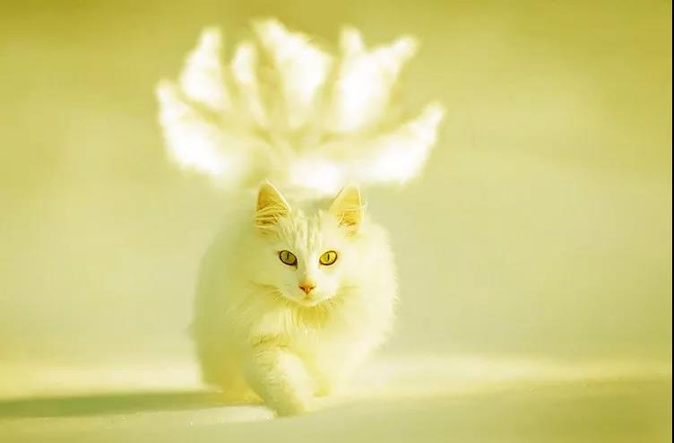 八尾猫匍匐在少年面前,舔了舔他的手,慢慢站起身,在一片闪烁的白光中,它长出了第九条尾巴,然后随着白光消失了。