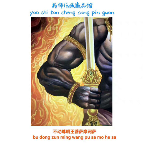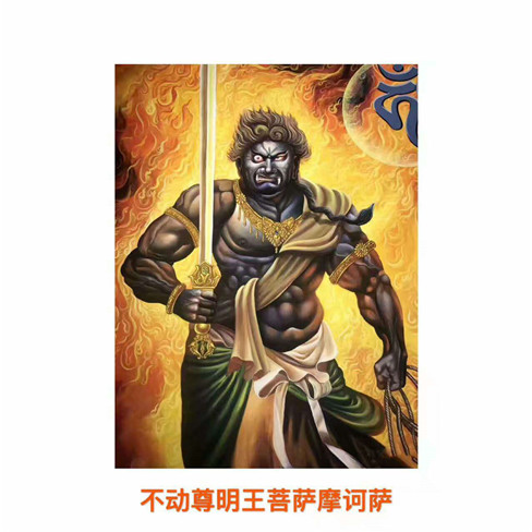 不动明王为佛教密宗八大明王首座,具有在遇到任何困难的时候,均能扫除障难,并不为动摇之意。不动明王显现愤怒像,使侵扰众生之邪魔畏惧而远离,使众生于修行路上不致动摇善念菩提心。