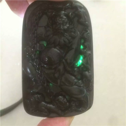 【坛城藏品介绍】天然翡翠墨翠钟馗,透光度非常好。种老,墨翠一直以来是人们最喜欢的一种翡翠,料子稀少也决定了墨翠的价格。钟馗的寓意大家都知道也不用多介绍了。
