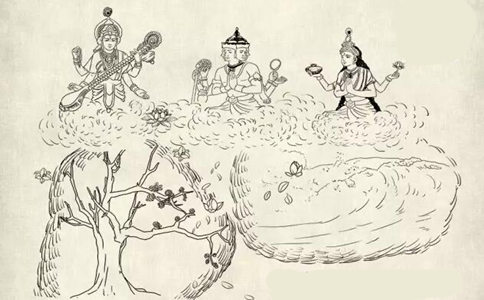 此时,天地震动,大海扬起波涛,枯树也绽放出美丽的花朵,天降下香水雨及香花瓣。天神天女目睹这幕舍身救生的善行,都共同歌诵道:是真菩萨,必早成佛。