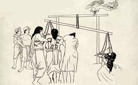 萨波达王便叫旁人拿秤子来,将鸽子放在一端,割下的肉放在另一端