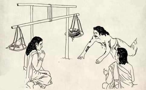 奇怪的事情发生了,任凭萨波达王不断割下身上的肉,直到身上的肉都快要割尽,仍然无法等同在秤子另一端鸽子的重量。