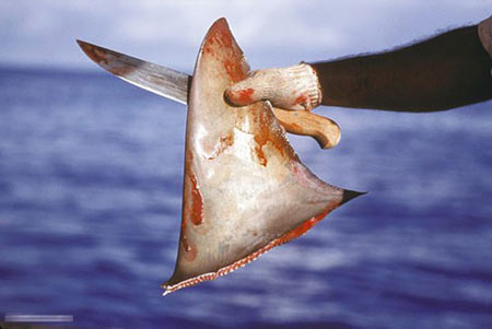 被割掉鳍之后又扔回海里的鲨鱼失去了游动能力,活活饿死在海底