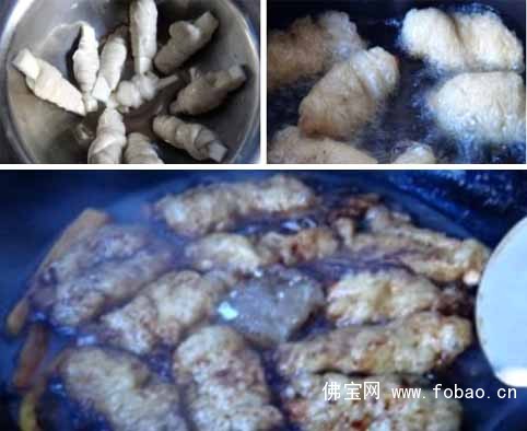 2. 起大油锅,生生夫放入油炸。(炸起来像面筋发得很大,过一会就缩小)