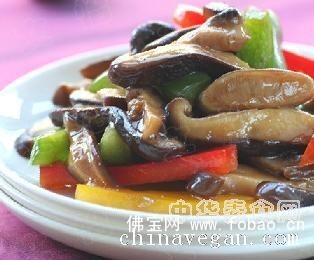 材料:鲜香菇、红、黄、绿、各色甜椒适量。
