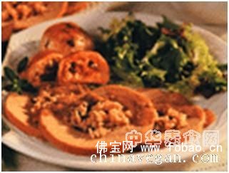 4、现成的素火鸡(内面已经有料的那种)可从超市买到。买到后,须按包装上的指示烘烤,然后切片,浇上无鸡素肉汤食用。 可以配其他的菜,如生菜色拉、水果等一起享用。