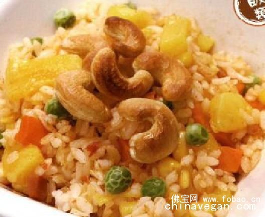 米饭一碗、新鲜凤梨100g、冷冻蔬菜100g、腰果50g、盐 少许、辣椒粉、少许