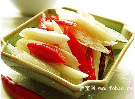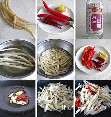 原材料:藕带300克、姜1/3块、干辣椒适量、红椒1-2个。