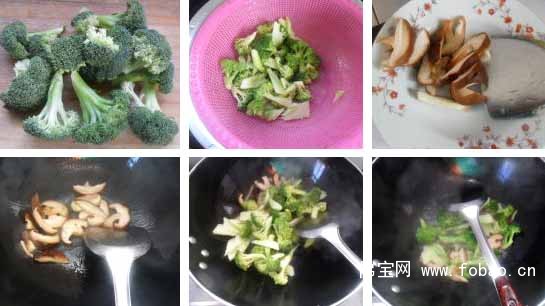 150g西兰花、25g香菇、油、盐、蘑菇精适量