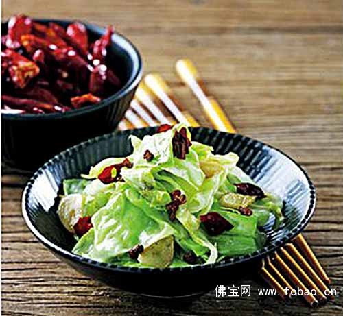 6.下包心菜翻炒至断生,下盐、调味起锅即可。