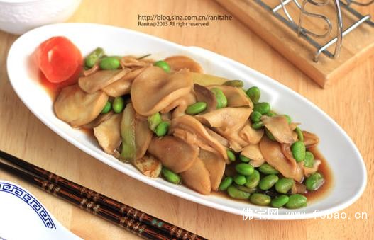 材料:杏鲍菇 1棵,去壳毛豆 1大把,葱姜蒜末