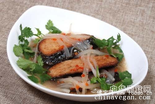 材料名称:年年素鱼、萝卜丝、红椒末、香菜