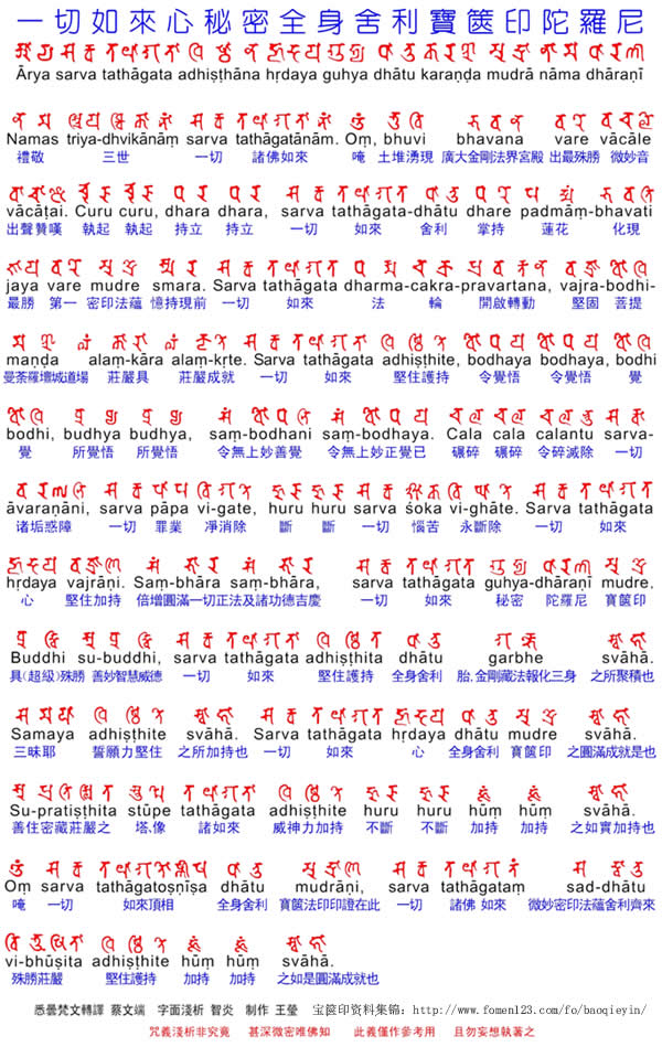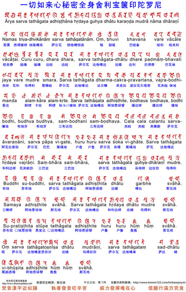 一切如来心秘密全身舍利宝箧印陀罗尼 梵文转译