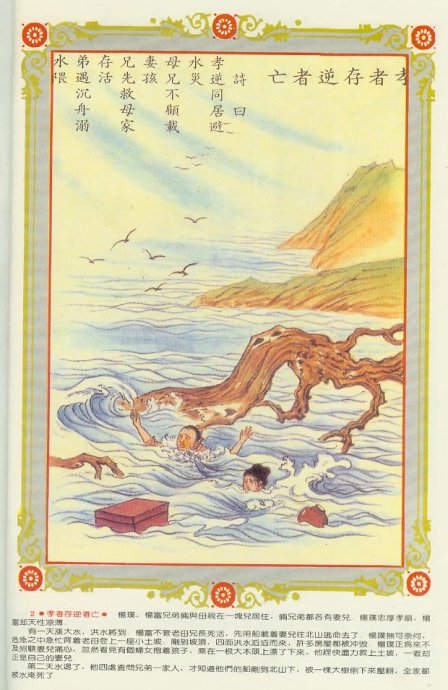 第二天水退了,他四处查问兄弟一家人,才知道他们的船刚到北山下,被一棵大树倒下来压翻,全家都被水淹死了。