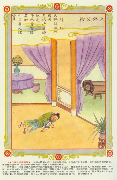 有天晚上,他梦见神人怒气冲冲地斥责他说:“你得罪了上天,竟还敢祷告求功名!”罗巩诉说无罪。神人说:“你久停父棺,不设法安葬,怎能说无罪!”罗巩忙说:“我还有兄长,没安葬父亲,为什么只怪我呢?”神人说:“你是读书人,当然应该明事理。你兄长贫穷又无知识,虽也有罪,但不能深责。”罗巩醒来后,对神人怪罪之事,仍然半信半疑。但不久,他就得了中风症,怎么也医治不好,终身潦倒不堪。6、厚妻子薄父母