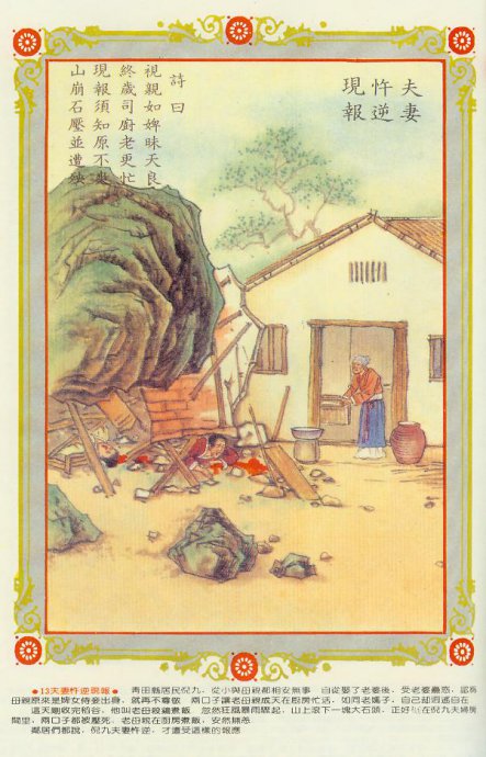 特别提示:“百善孝为先”本人前期曾整理过二十四孝图。不孝呢?当然是有大果报的。今天我整理了忤逆不孝报应图,以供养各位佛友。本文收录了十四幅图片,并作了十三段简短的介绍。