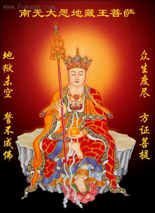 有人问我说:“地藏王菩萨在地狱里度众生,地藏王菩萨住哪?还度不度人间?”地藏王菩萨发的愿是地狱不空誓不成佛,并不是说他永远在地狱里度众生,人间就不度了,天上也不度了,并不是这个意思,这样理解就错了。你在人间造业,在天上造业,福报享尽了,还是要下地狱。他是说把你的罪业度清净了,你就不再下地狱了,那就再没有下地狱的众生了,是这个意思,并不是地藏王菩萨总在地狱里头。他到人间来也是住到人间,佛在忉利天说法,地藏王菩萨就住在忉利天。
