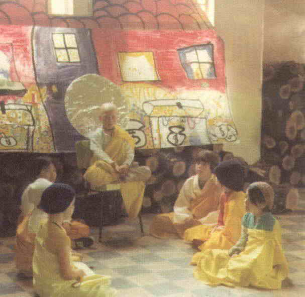 世间教育2——70年代课堂——佛法语文灵活用(上人旁边是一起听课的两只鸽子)
