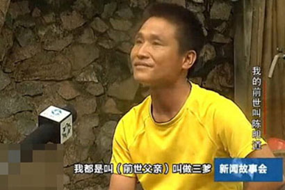 “三爹见我说得一丝不差,确认了我是陈明道后,他一下子抱起我大哭不止,我也抱着他哭,跟着我一起来的唐崇进父亲也哭。这时,惊动了四邻,他们都赶来看是怎么一回事。一场伤感过后,三爹把我放下。我见到二爹的儿子陈军助弟弟,还有以前的好友,每一个人我都认得,并且上前叫他们的名字,说以前与他们一起做过什么事,说得一点不差,他们不得不承认我是陈明道,我还能认出我前世的女友谢树香。”