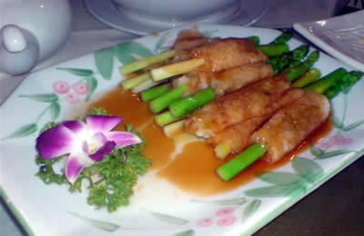 材料:绿芦笋二百克、已发泡的竹笙卅克、盐一茶匙、