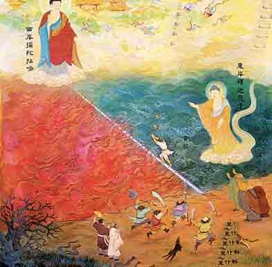 那阿弥陀佛就安居在极乐净土,他就来接。一个是派遣,一个是来接引,以清净、以安乐、以庄严、以微妙、以光明、以清凉来摄受我等众生。
