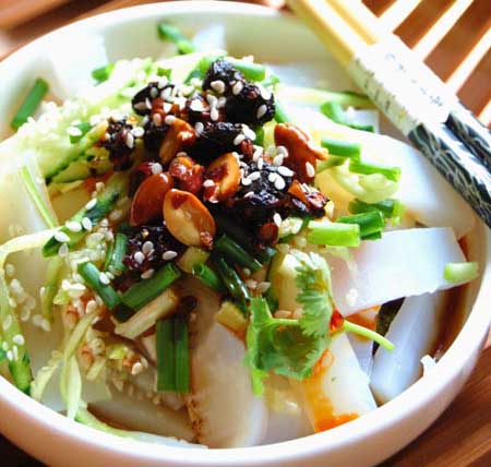 黄瓜、绿豆淀粉、芝麻油、白芝麻、生抽、醋、辣酱、风味豆豉