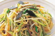 黄豆芽200g﹐萝卜100g﹐胡萝卜1/2个﹐蕨菜50g﹐桔梗50g﹐梨1/2个﹐松子粉1大勺﹐辣椒丝少量