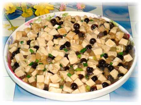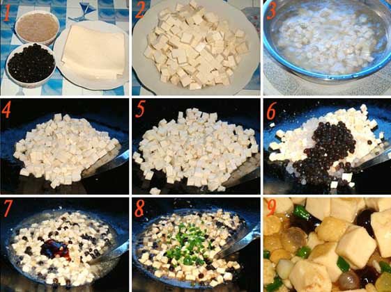 7、加些水把珍珠炒散,放入生抽和蚝油