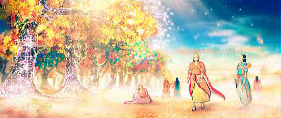 于是我们到了西方极乐世界,在极乐世界本土的地面上、墙壁上、树枝、树干上,都能够看到他方世界所有的刹土境界。这是“无边刹土光中现”。