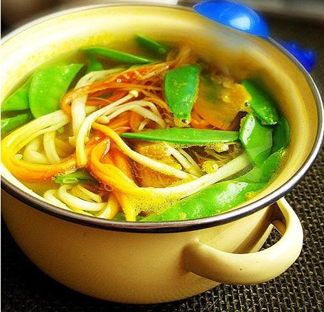 5、10分钟后加入荷兰豆,沸腾后加盐调味即可。