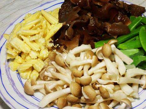 材料:(基本上材料都是可以自由搭配的),胡萝蔔、马铃薯、白玉菇、柳松菇、黑木耳、玉米笋、甜豆、香菇、笋子