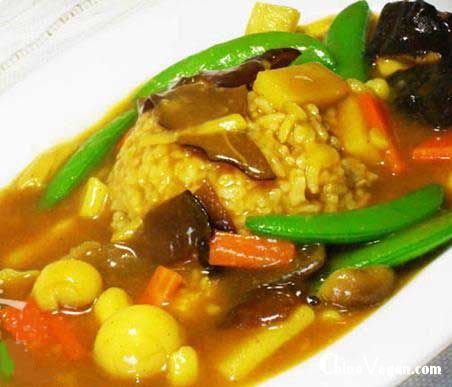 咖哩粉(选自己喜欢的牌子)、味淋、酱油膏(或素蚝油)、盐巴、太白粉+水(勾芡用)