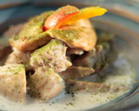 3.老姜爆香后,依序加入素蚝油、鲜冬菇、水、芋头,焖煮约15分鐘后,再加入红甜椒、黄甜椒、椰奶,煮数分鐘后即可盛盘。
