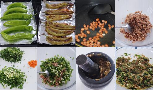 小贴士:这道菜的关键在于要把烤好的辣椒碾碎成泥,如果方便,可以把香菜香葱同样都碾一下,味道会更好。