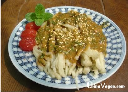 3、倒在盘中茄丝上,撒上白芝麻即可。