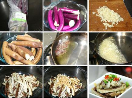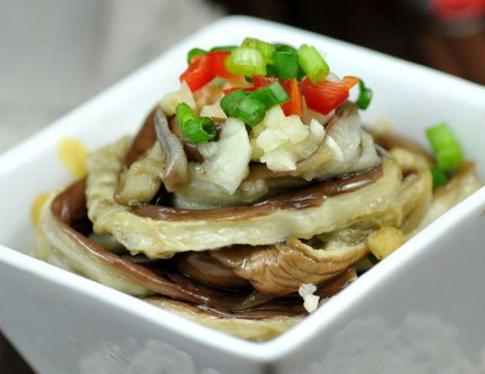 原料 : 茄子、 花椒、 蒜末、 葱、 红椒、 盐、 生抽、麻油、 醋、 糖。