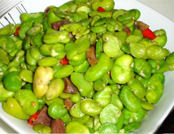 好的蚕豆营养丰富。据医学研究证实,蚕豆每100克含蛋白质28.2克,碳水化合物48.6克,脂肪0.8克,还含有粗纤维、钙、磷、铁、维生素B等多种有益人体的物质。蚕豆是低热量食物,对高血脂、高血压和心血管疾病患者来说,都是一种良绿色食品。