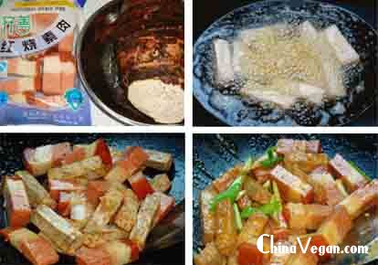 材料:芋头、素红烧肉、姜切、糖、生抽