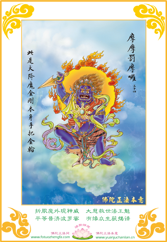 「罚摩啰」:这一句是大的降魔金刚,手里拿着一个金轮。什么叫大的降魔金刚呢?因为这一位金刚,身可以变成好像须弥山那么大。