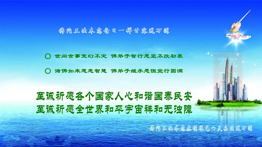 现代快节奏的生活,学业事业的压力,感情的纠葛,与同事家人关系的不和谐,对未来的担忧,父母的身体,孩子的教育等等烦恼困惑,让每个在红尘苦海轮转的迷途人都感觉到疲惫不堪,甚至让人经常想逃离这纷繁的世间。其实烦恼不在外境,在每个人的自心。当您心里烦躁不安时,映入眼帘的如果是一幅让人获得平静的绿色心灵桌面,也许能够让您烦躁的心静下来,佛陀正法网为您每日送上一幅原创佛教绿色心灵桌面,让心灵处在安详平和的状态,听听悠扬清心的佛乐,净化一下内心的尘垢,反思一下自己言行的不妥之处,激励自己改正,当您看到佛菩萨祥和慈悲的面容,是否会想到自己也该学习佛菩萨的慈悲去善待身边每个有缘人呢?以更平和乐观的心态去面对身边的每个人,您会发现善缘在不经意间已经种下,智慧就在安详平和的心态中开启,命运的改变就在当下。静下心来,听听佛乐,念念佛号和真言,瞬间的安详平和也是与自性的相应。回归慈和暖阳清净的自性吧,那才是真正的本来...