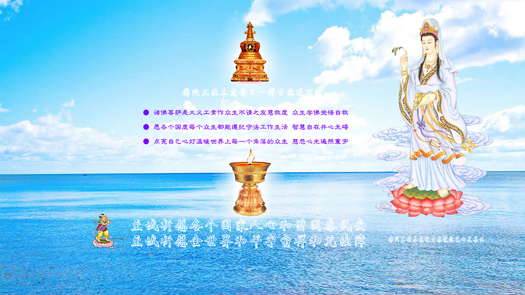 现代快节奏的生活,学业事业的压力,感情的纠葛,与同事家人关系的不和谐,对未来的担忧,父母的身体,孩子的教育等等烦恼困惑,让每个在红尘苦海轮转的迷途人都感觉到疲惫不堪,甚至让人经常想逃离这纷繁的世间。其实烦恼不在外境,在每个人的自心。当您心里烦躁不安时,映入眼帘的如果是一幅让人获得平静的绿色心灵桌面,也许能够让您烦躁的心静下来,佛陀正法网为您每日送上一幅原创佛教绿色心灵桌面,让心灵处在安详平和的状态,听听悠扬清心的佛乐,净化一下内心的尘垢,反思一下自己言行的不妥之处,激励自己改正,当您看到佛菩萨祥和慈悲的面容,是否会想到自己也该学习佛菩萨的慈悲去善待身边每个有缘人呢?以更平和乐观的心态去面对身边的每个人,您会发现善缘在不经意间已经种下,智慧就在安详平和的心态中开启,命运的改变就在当下。静下心来,听听佛乐,念念佛号和真言,瞬间的安详平和也是与自性的相应。回归慈和暖阳清净的自性吧,那才是真正的本来...
