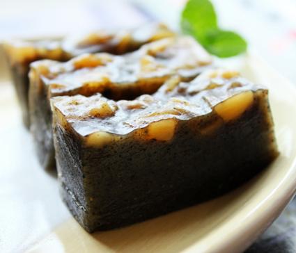 材料:糯米粉300克、澄面(小麦淀粉)75克、黑芝麻60克、核桃仁60克、冰片糖210克(如喜欢甜的可稍增加分量)、清水380克