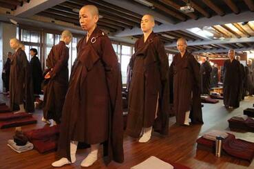 这种方式就是吸气时呼唤某一项事物,呼气时说我在当下,我在这里。你可以呼唤佛陀的名号,也可以呼唤周围种种的事物。比如你处在某个地方,象山西、河北,你可以轻声呼唤它的名字。经行的时候不要有任何目的,不要问自己要到哪里去,你只要一步步缓行在当下就行了。在法国梅村禅修中心,每天以几种不同的方式经行,时时刻刻保持正念,用这种巧妙的方法来培养定力和智慧,同时会享受到当下生活的乐趣。