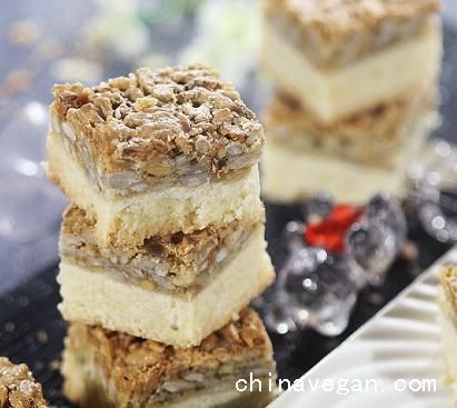 2、饼底在完全烤好并冷却以后,口感十分酥松。葵花籽馅烤过之后会凝固在一起。如果烤好的饼底还是比较软,或者葵花籽馅仍比较湿润,则表示烤的时间还不够,需要再多烤一会儿。