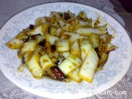 1、干姜刮皮切成丝,大白菜外侧的老叶剥去不用。将菜叶正片入废水锅。烫煮1-2分钟至8成熟。取出沥干水分。在切成2cm宽,15cm长的条状。