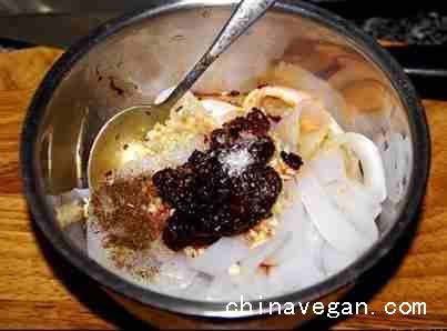 材料:凉粉(成品)、豆豉酱、香葱、蒜、香菜、干辣椒(根据口味而定)、味精、盐、花椒粉(油)。