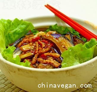 原料:茄子、素肉丝、姜丝、四川豆瓣辣酱