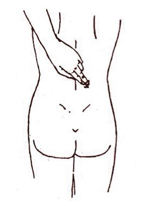 按摩时,两手对搓发热,紧按腰眼处,稍停片刻,然后用力向下搓到尾闾部位(长强穴)。每次做50~100遍,每天早晚各做一次。搓外后两手轻握拳,用拳眼或拳背旋转按摩腰眼处,每次5分钟左右。